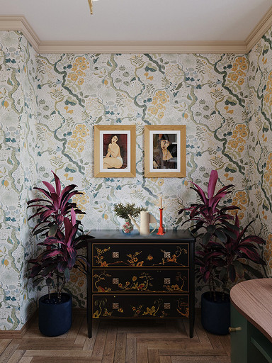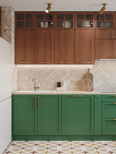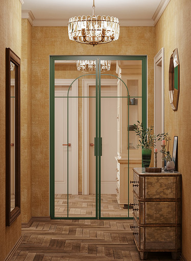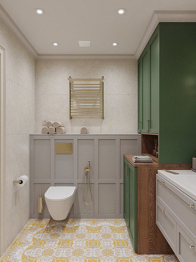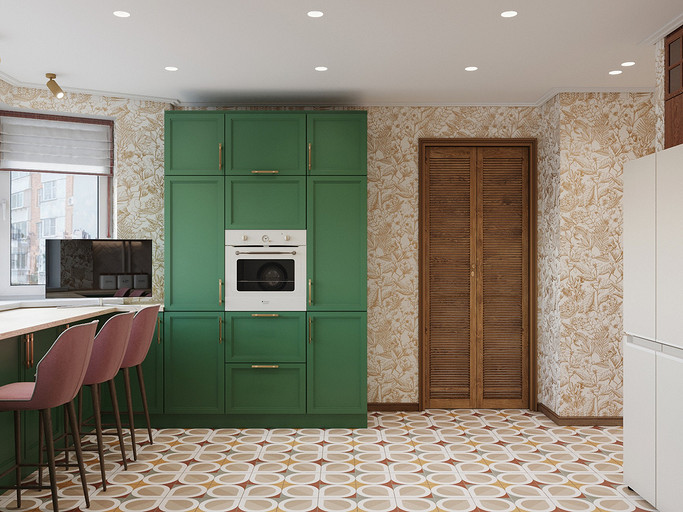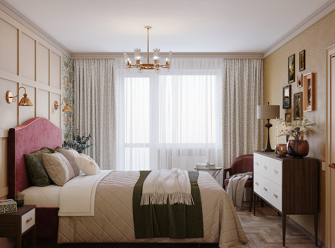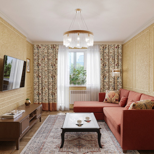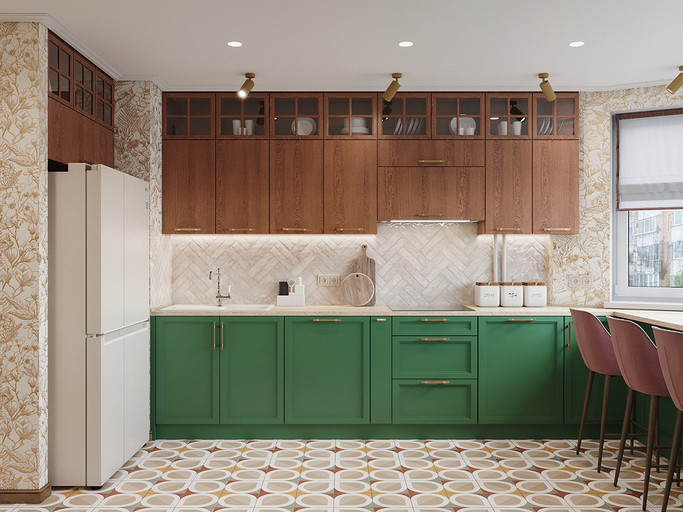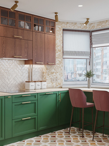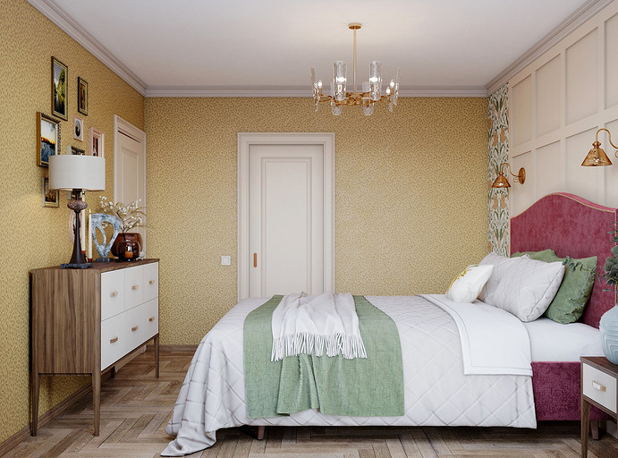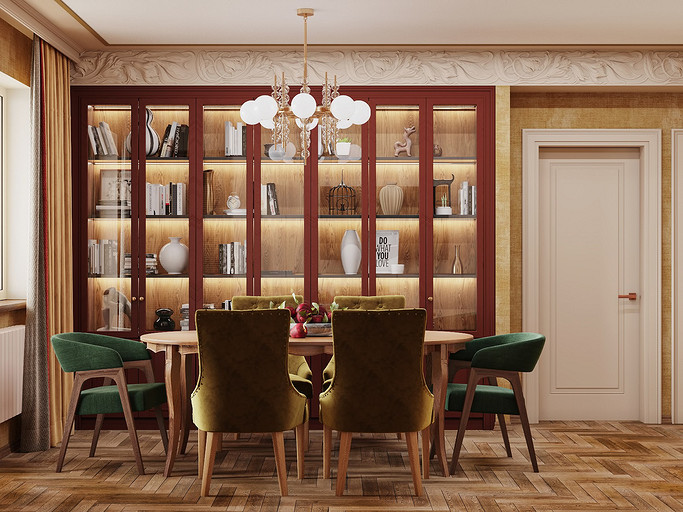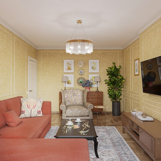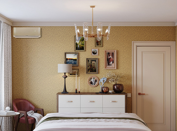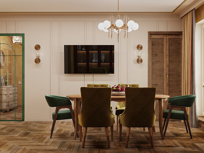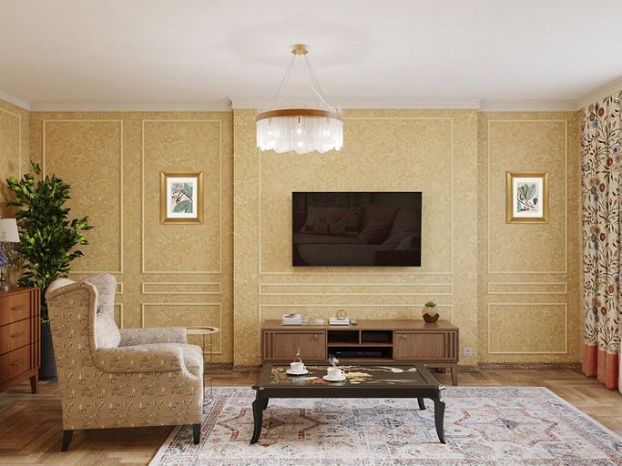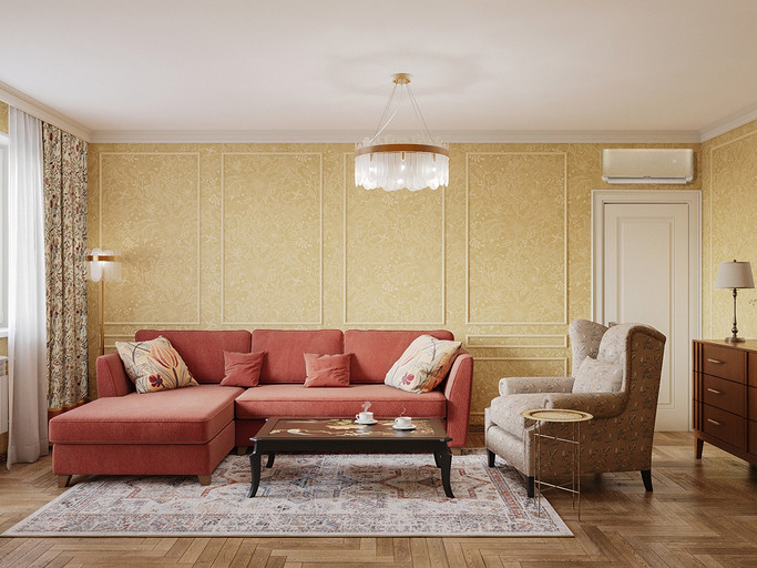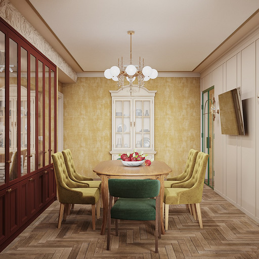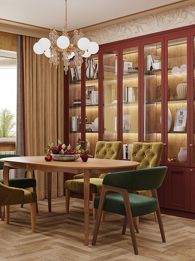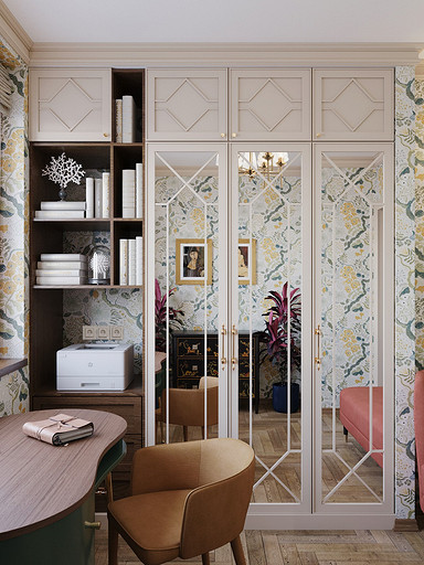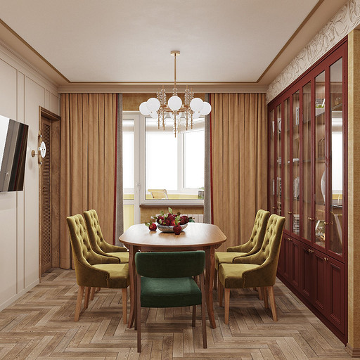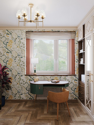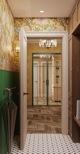 Дизайн-проект стилизован под английскую классику с включением как современных, так и винтажных элементов. Заказчики хотели увидеть интерьер «с историей», чтобы было ощущение, что предметы появились неодномоментно и продумано, а постепенно, с любовью к каждому элементу. При этом совсем в старину уходить не хотели. Потому этот интерьер — именно стилизация, новое прочтение классических приемов. Английский стиль всегда про уют и аутентичность.Теплая гамма, преимущественно охристые, горчичные тона. Качественная мебель из натуральных пород дерева, элегантный текстиль, изысканный декор, золотые нотки, активный принт в обоях, сочетание сложных ярких оттенков.