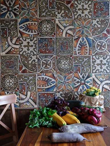 - Стены: обои Marburg, плитка Kerama Marazzi