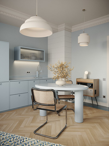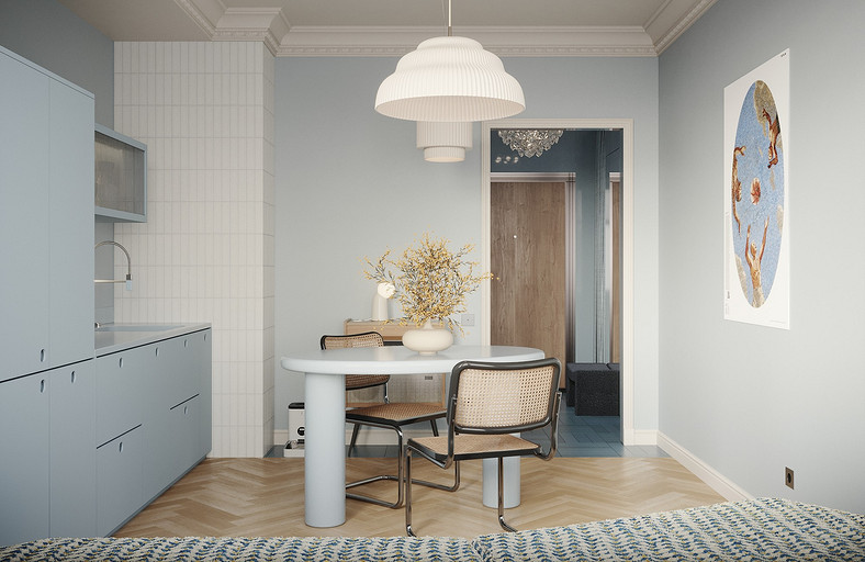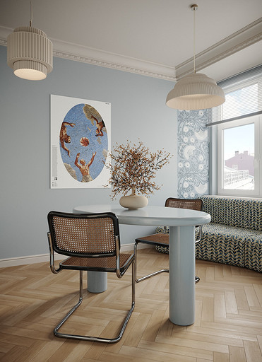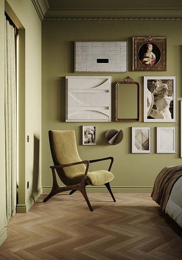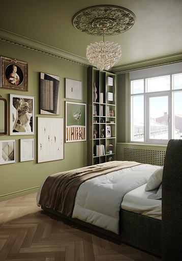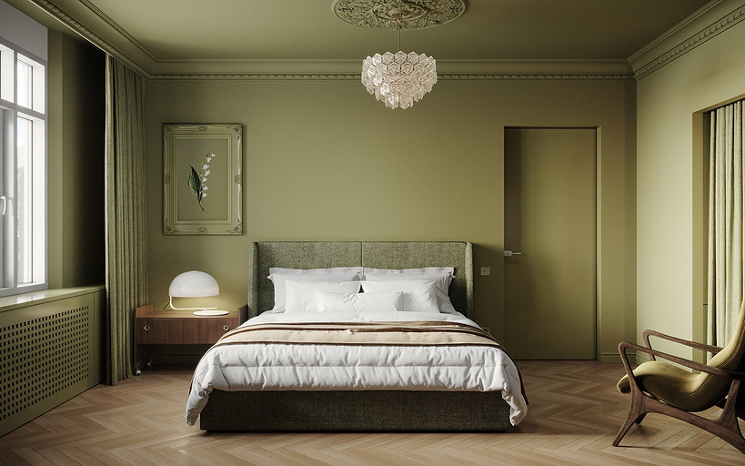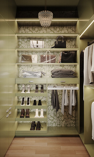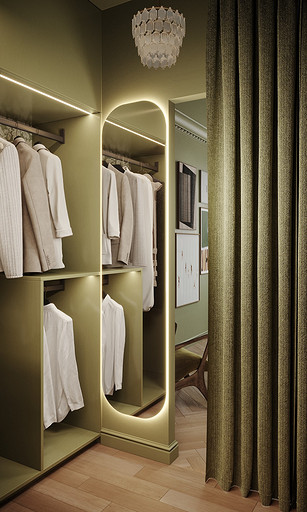 Площадь | 45 м² Год | 2023 Город | Санкт-Петербург Оригинальная квартира в «тихом» центре Петербурга для девушки, которая не просто связана с дизайном интерьеров — она живет им. В этом интерьере поселились по соседству исторические элементы сталинского ампира и современный минимализмВ гардеробной применили такой интересный элемент, как обои в шкафу. Это наполнило интерьер историей, своего рода ретро-дизайн с советским оттенкомСмотреть больше фотографийИдея началась со смены обивки бабушкиного кресла в бархатный зеленый. Но только творческий человек готов решится на «зеленый» эксперимент максимально нестандартно!Моноколор во всей комнате -зеленый цвет стал ключевым в концепции спальни, вплоть до покраски потолка, розетки, лепнины и плинтуса.