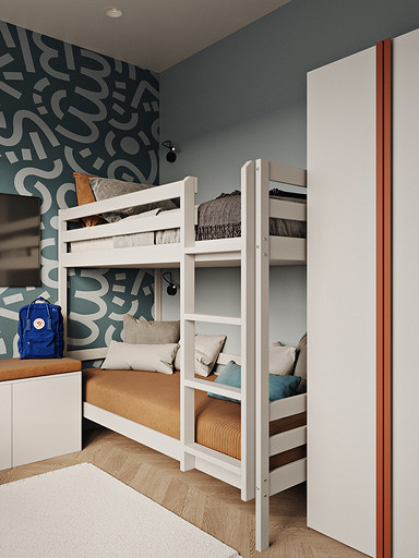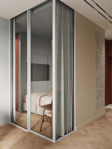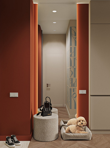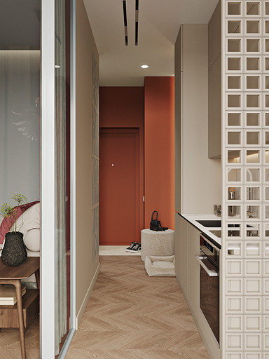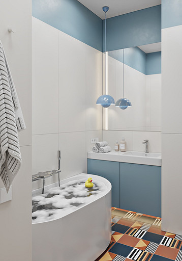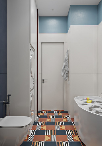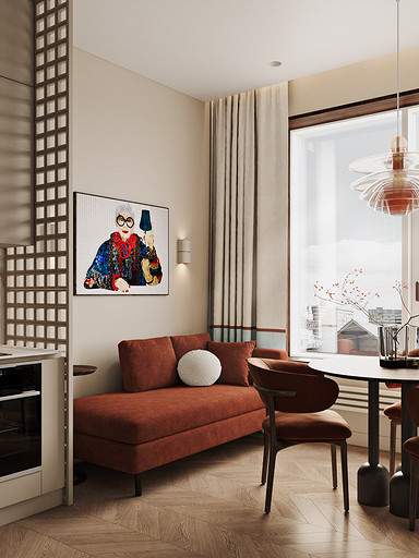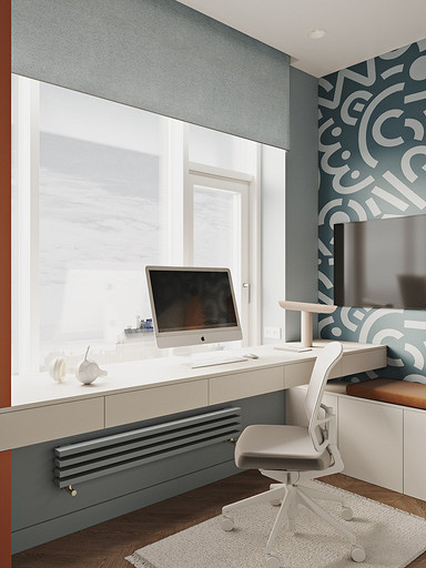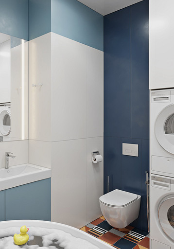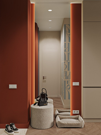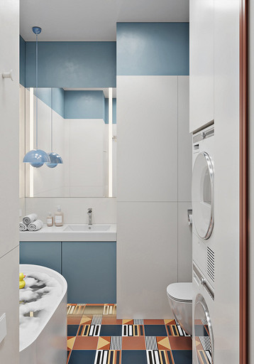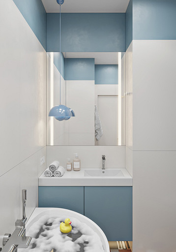 Квартира для творческой молодой мамы с двумя детьми, которые не сидят на месте. Большинство людей любят спокойные тона в интерьере, для жизни и отдыха, но яркий цвет заряжает энергией поэтому он жизненно необходим динамичным непоседам. По интерьеру сразу виден характер заказчика. Панно в гостиной с известной иконой стиля и дизайнером интерьеров Айрис Апфель служит акцентом всего пространства и отражает творческую составляющую личности. Небольшая спальня и детская комната необходимы только для сна и отдыха, но в них есть все необходимое из предметов мебели и отдельная гардеробная. Даже в небольшую квартиру или апартаменты можно грамотно вместить несколько отдельных зон и у вас не будет ощущения маленького пространства.