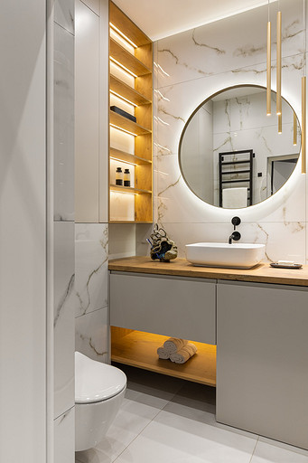 - Сантехника: унитаз с инсталляцией и кнопкой Tece, смесители, гигиенический душ и душевая система Grohe