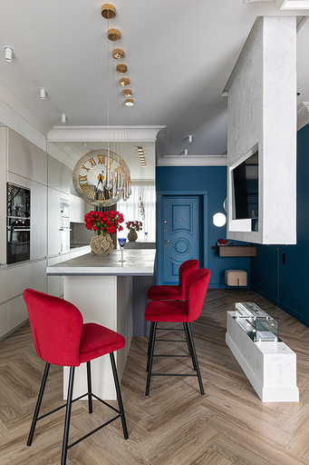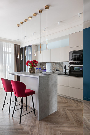 Жилой комплекс, в котором находится эта квартира, расположен в меньше чем сотне метров от моря. И из окон открывается вид на синюю гладь. Дизайнер не могла не отразить это в интерьере. Хотя и сам по себе проект примечателен работой с функциональностью и удачным использованием всех имеющихся метров. Читать далее...
