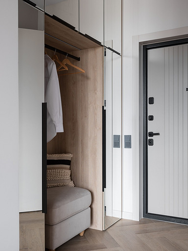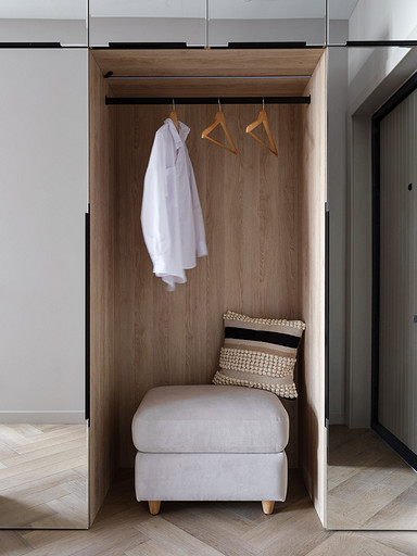 - Мебель: шкаф сделан на заказ по эскизам дизайнера, пуф SK Design