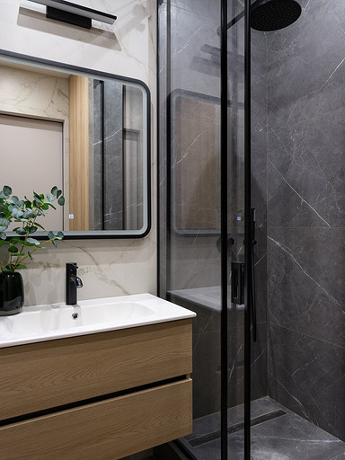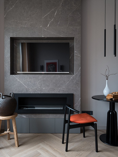 - Стены: отделка ТВ-зоны — керамогранит NT Ceramic