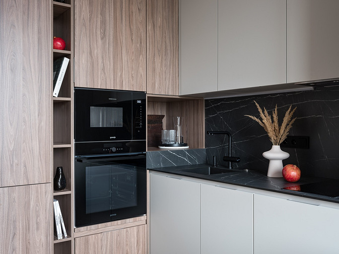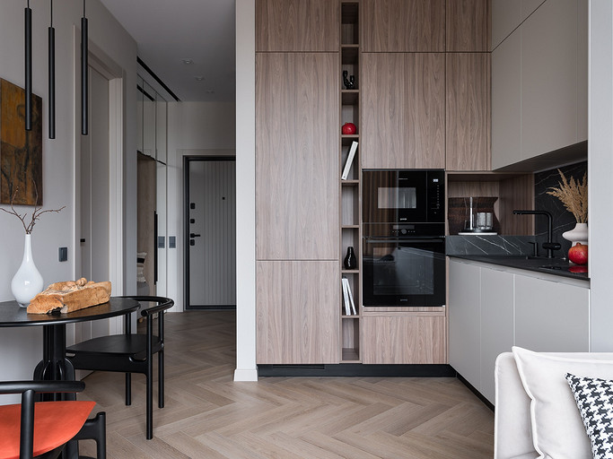 Мужчина хотел, чтобы его жилье было максимально функциональным, комфортным и визуально лаконичным. Дизайнер сразу нашла концепцию, которая удовлетворила его запросы и пожелания.