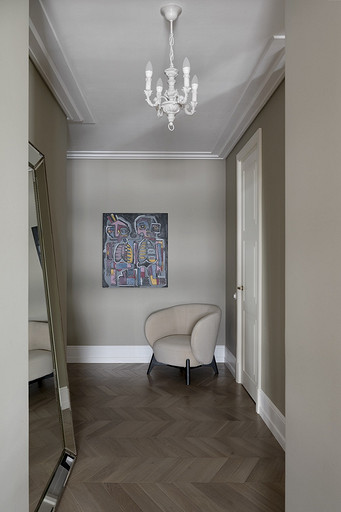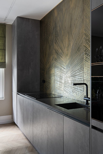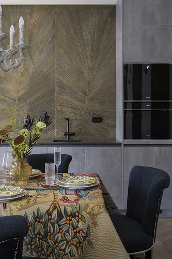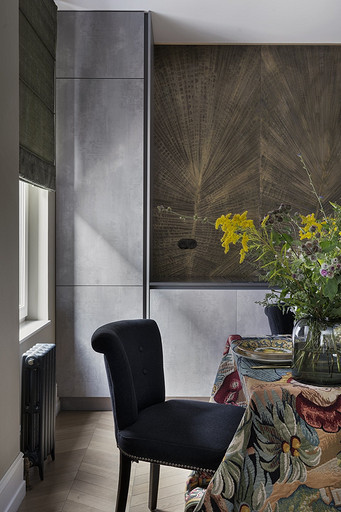 - Стены: краска Manders, панно на кухне Metalli Metal Light