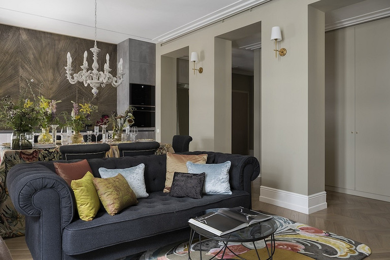 Глубокая, в чем-то даже драматичная цветовая гамма, классическая мебель и продуманный декор делают эту квартиру изысканной, но уютной. Читать далее...