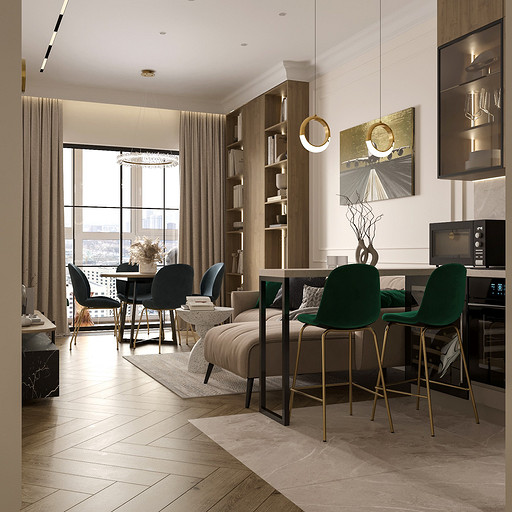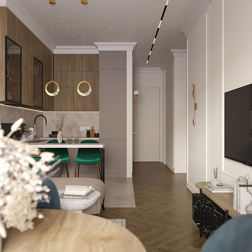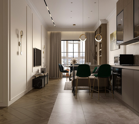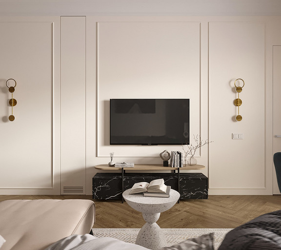 Просторная квартира в стиле современная классика для семьи с маленьким ребенком
