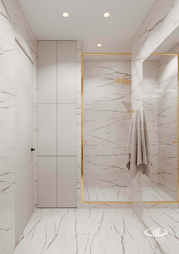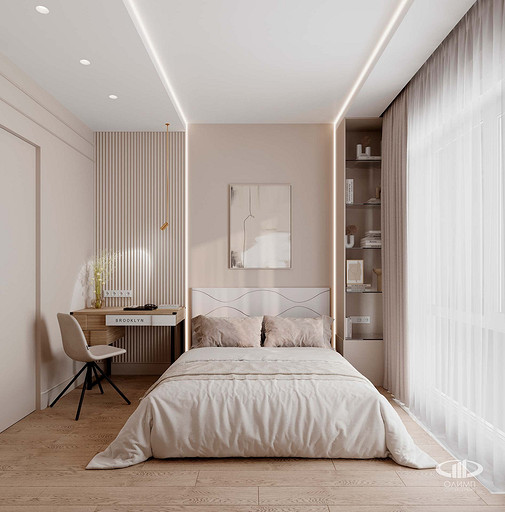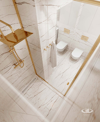 Проект этой однокомнатной квартиры площадью 33 кв.м в ЖК «Велтон Парк» в стиле современная классика был разработан нашим дизайнером для проживания молодой девушки – студентки. Несмотря на небольшие размеры квартиры, ее планировка включает в себя: кухню – столовую с диваном и навесным телевизором, прихожую со встроенным в нишу шкафом, санузел с душевой кабиной и стиральной и сушильной машинами, зеркалами, что зрительно увеличивают его объем, спальной комнатой с полноразмерной двухспальной кроватью, рабочим столом, подвесным телевизором над консольной тумбой и гардеробной комнатой с откатной в пенал дверью. В отделке квартиры применены качественные и надежные материалы – керамогранит с рисунком натурального мрамора, напольная инженерная доска, полиуретановые молдинги и панели с плинтусом, краска, что позволяет стенам «дышать». Встроенная мебель с эмалированными матовыми фасадами и столешницами из искусственного камня сделана на заказ с высоким качеством.