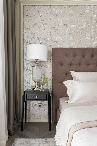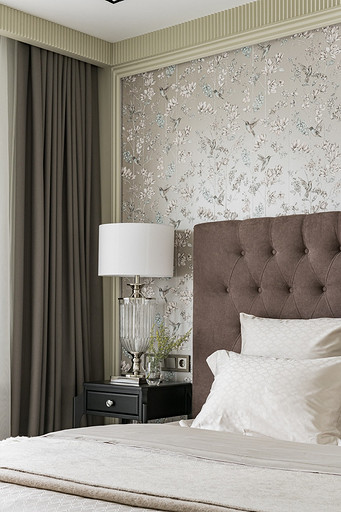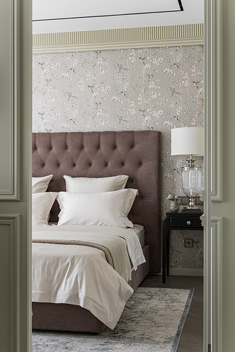 - Стены: краска Swiss Lake, обои Holden Decor, керамогранит Atlas Concorde