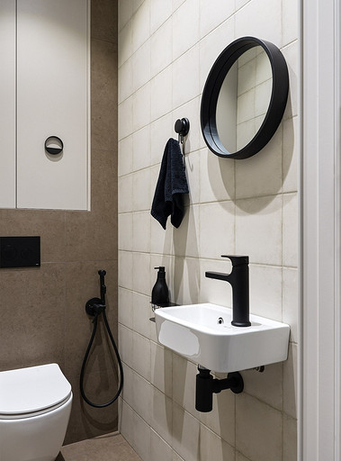 - Сантехника: раковина Weltwasser, смеситель Boheme, система инсталляции и кнопка смыва Tece, унитаз Vincea, гигиенический душ Iddis