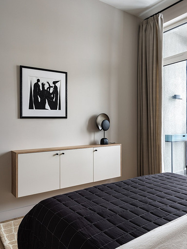 - Мебель: встроенный стеллаж и рабочая зона сделаны на заказ в Panda-Banda, кровать сделана на заказ в A&E Master, прикроватная тумба La Redoute