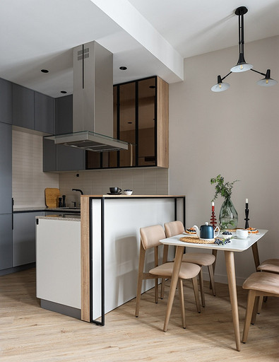 Дизайнеры спроектировали для молодой женщины уютное и функциональное пространство. В квартире сложная планировка, практически нет прямых углов, но получилось найти очень классные решения. Читать далее...