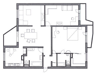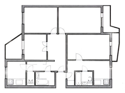 Однокомнатная (36,4 м2) и трехкомнатная (73,8 м2) квартиры, образующие блок-секцию в доме серии