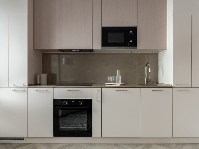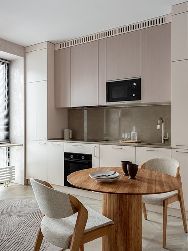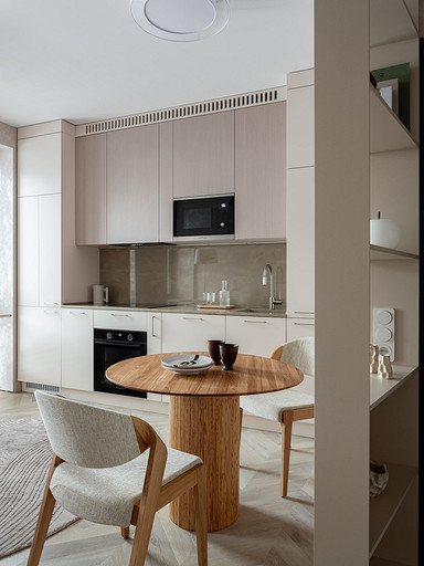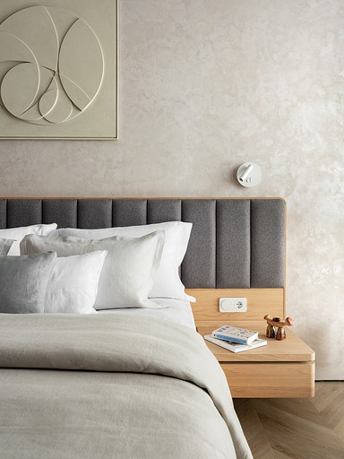 - Мебель: диван Hauska, приставной столик Cattelan Italia, кровать, стулья и пуфик Parra, шкафы и кухня — подмосковные столярные производства
