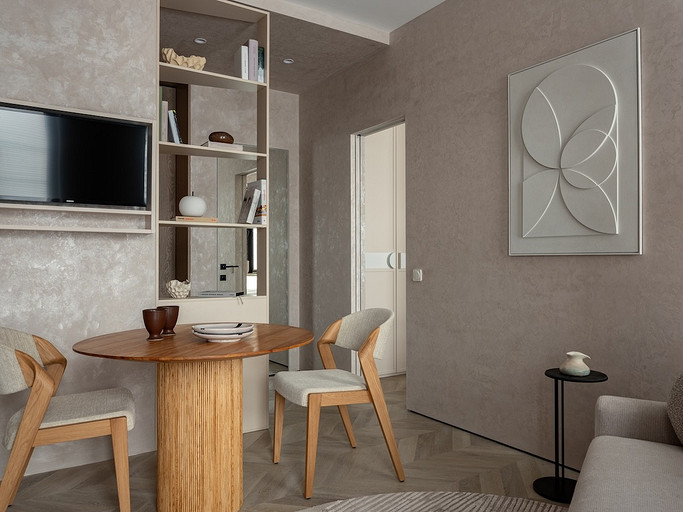 Покрытие на стенах с легким блеском, полукруглая колонна в спальне — в этом интерьере можно заметить новое прочтение казалось бы забытых тенденций. Но они выглядят удивительно органично и вместе создают цельный образ уютного пространства. Читать далее...