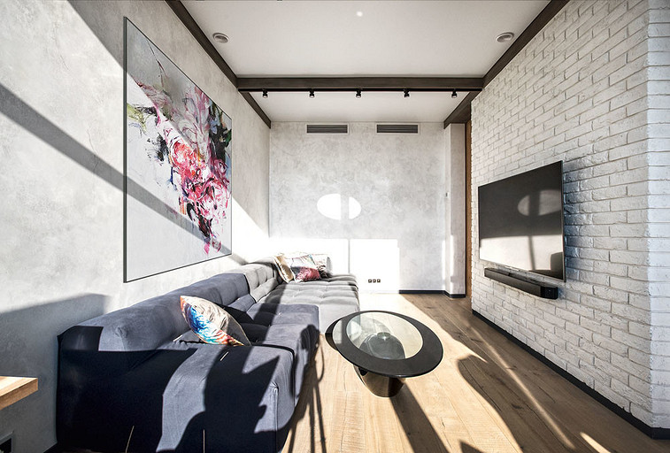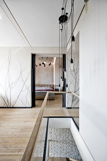 Элегантная двухуровневая квартира в Москве напоминает стеклянную скульптуру, созданную стеклодувом, — если бы мы могли рассматривать подобное произведение не снаружи, а изнутри. Оболочки стен, кажется, легко пропускают свет и мягко обтекают жилые объёмы, оставляя внутри много воздуха и лёгкого дыхания, а немногочисленные предметы мебели и декора точно расставленными штрихами удерживают форму пространства, «нанизанного» на пластичную ленту лестницы.