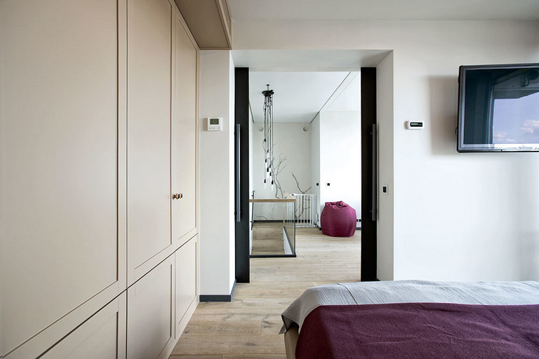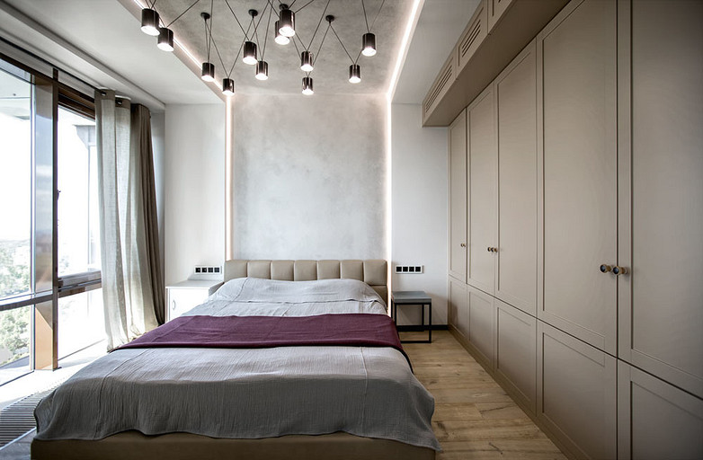 - Мебель: кровать, прикроватные столики Archpole, шкаф PM-studio