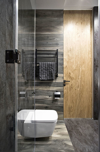 - Пол: керамогранитная плитка под дерево La fabbrica Kauri