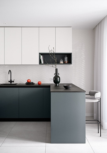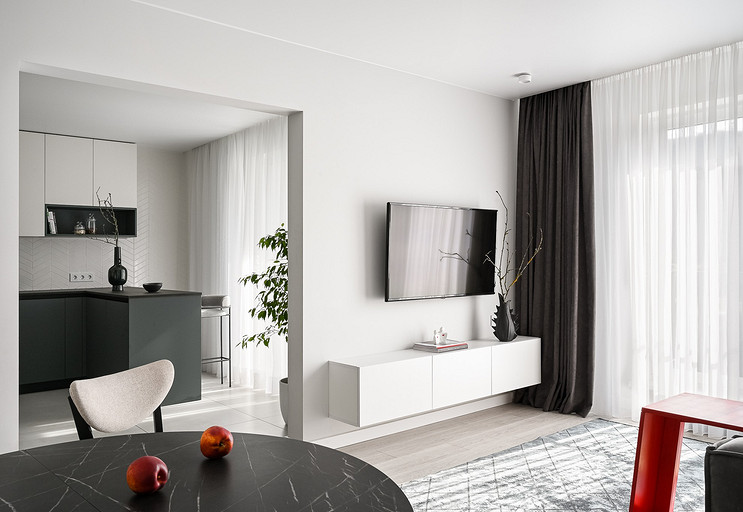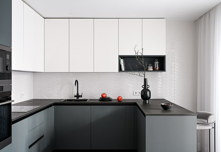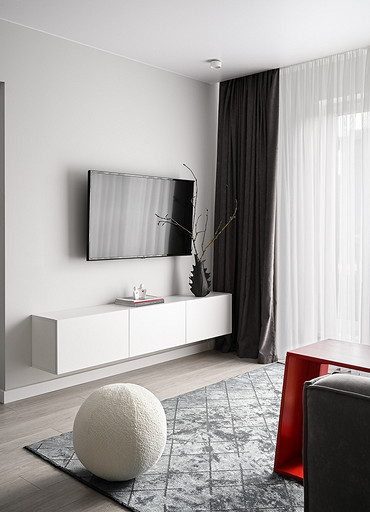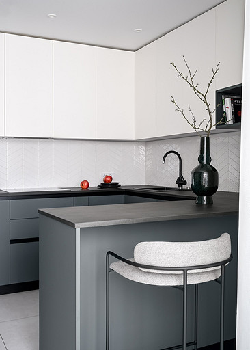 - Мебель: барный стул на кухне, журнальный столик в гостиной, пуф в прихожей и прикроватные столики в спальне Mexo, материал кухни Fenix, обеденный стол Linar Group, стулья Bagreti, диван Softhome, мебель в детской ИКЕА, вязаный пуф accessory_artstyle