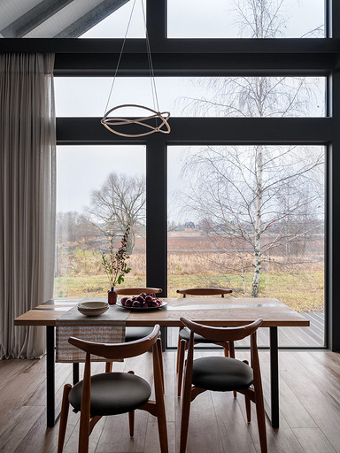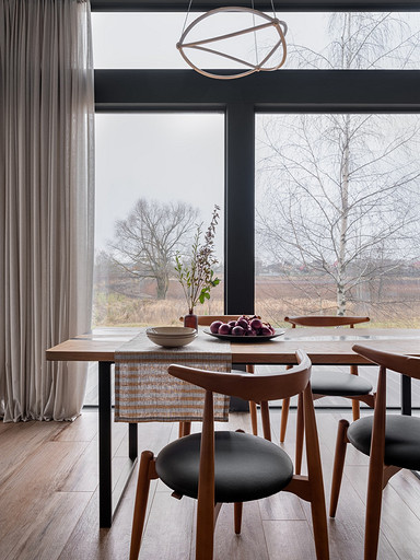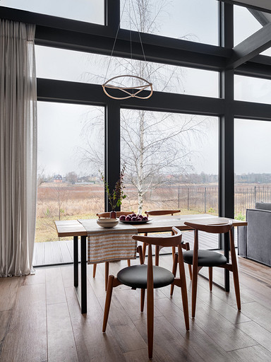Сплошное остекление стен с видом на естественный ландшафт подсказало стиль, а, казалось бы, чисто конструктивные особенности фахверковой архитектуры — эффектные балки — определили лицо интерьера. Читать далее...