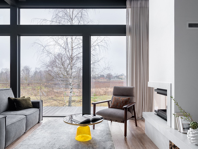 Современный фахверковый дом с минималистичным интерьером для пары