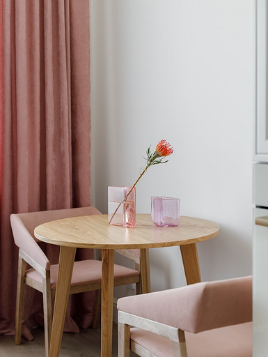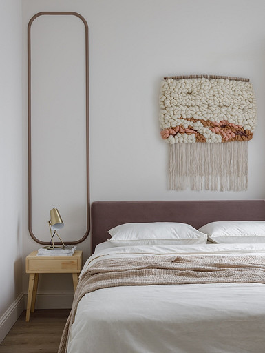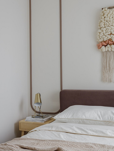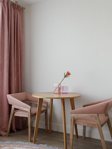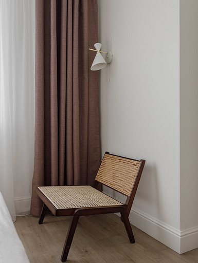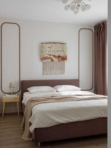 - Мебель: стол и стулья We to You, прикроватная тумба «Мулле Мек», корпусная мебель сделана на заказ у мебельщиков, диван и кровать Moon, кресло в спальне H&M Home