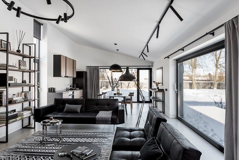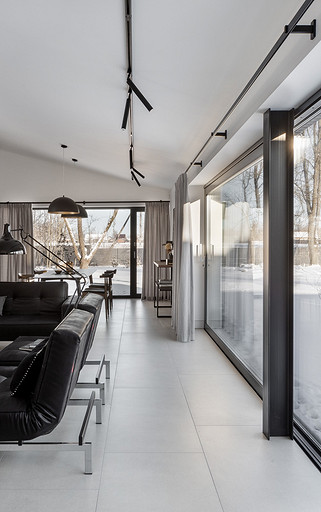 Эффектный одноэтажный дом расположен в живописной местности в окрестностях Минска, под Логойском, в так называемой Белорусской Швейцарии. Неслучайно заказчиком дома стал швейцарский подданный. При работе над проектом Александр Кратович вдохновлялся, как он сам признается, архитектурой знаменитого архитектора-модерниста Людвига Мис ван дер Роэ, отсюда лаконизм линий, материалов, цвета. Подчеркнуто функциональное пространство решено как открытое и перетекающее. Читать далее...