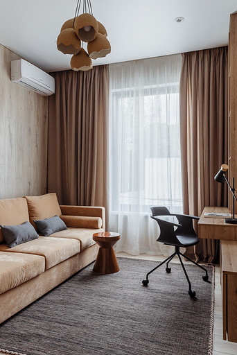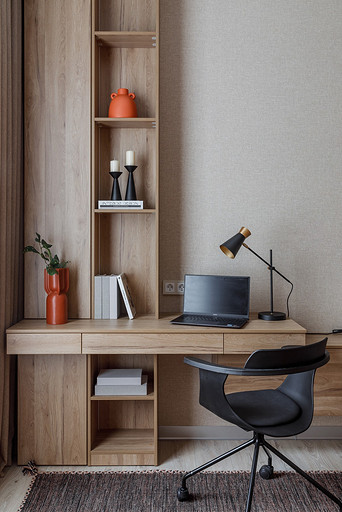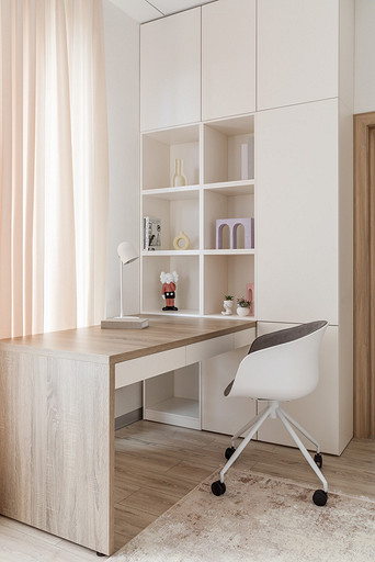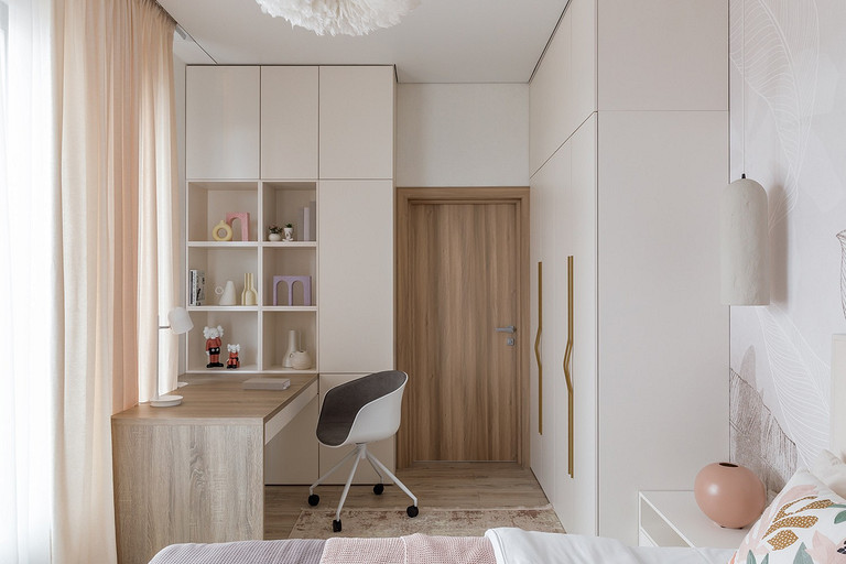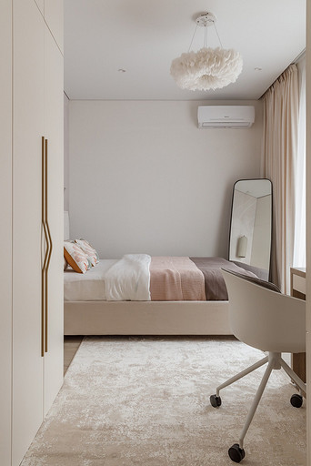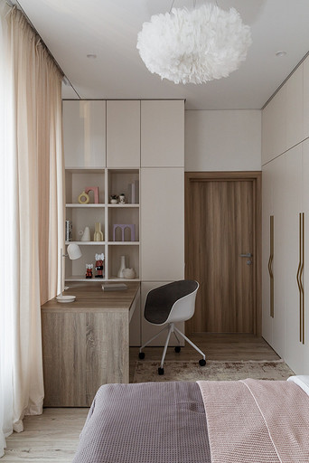 - Мебель: выполнена на заказ по эскизам дизайнера дизайн-студией Artefact (корпуса Egger, пленочные фасады), мебель-трансформер «Чудо-шкаф»