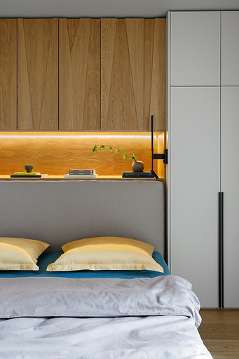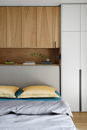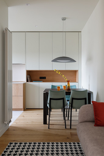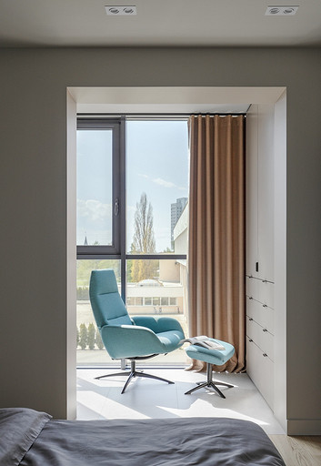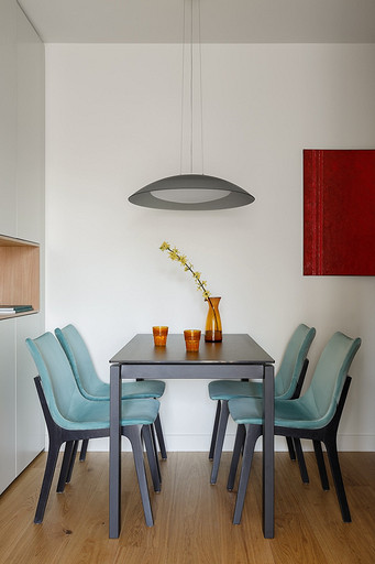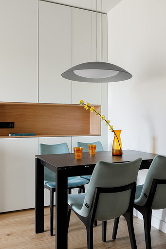 - Мебель: корпусная мебель сделана на заказ по чертежам студии, кровать в спальне и обеденный стол Calligaris, кресло на лоджии и диван в гостиной Sits, обеденные стулья Claudie, стулья в детской и коридоре Bold Moustache