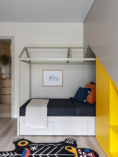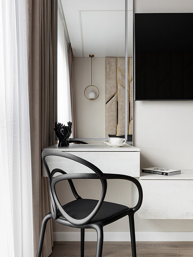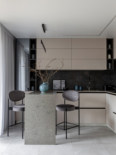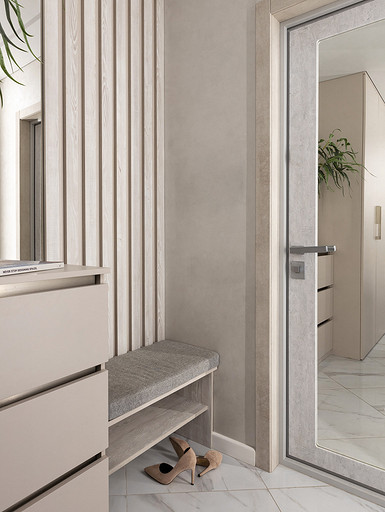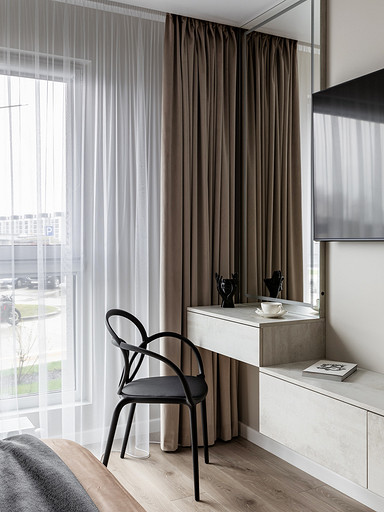 Есть такие места, которые вызывают какие-то особые эмоции. в которых чувствуешь себя легко, свободно и умиротворенно. Одним из таких мест является жилой комплекс «Пирс» в агрогородке Ратомка, недалеко от Минска. Мои заказчики — молодая пара с ребенком, которые мечтали как можно скорее съехать из тесной однушки в свою новую трехкомнатную квартиру в удаленном от шумного города жилом комплексе «Пирс», площадью 82 кв.м. Запрос был на светлое воздушное пространство, с достаточным количеством мест хранения. Заказчице очень хотелось различные сценарии освещения и золотые элементы в будущем интерьере. Учитывая все пожелания семьи, было создано комфортное, функциональное, светлое, наполненное воздухом пространство. В квартире достаточно много мест хранения, таких как гардеробная в спальне, большой вместительный шкаф в коридоре и детской, просторная кухня с ящиками и даже большая скрытая ниша для стиральной машины и белья в ванной комнате. Золотые элементы нашли своё место в спальне в виде светильников и геометрических линий в изголовье. Изюминкой данного интерьера стали зеркала, которые ненавязчиво расположились узкими полосами на дверях, стенах в гостиной и фасадах шкафа. Ярким акцентом выступает искусство, стулья и различные аксессуары. Детская комната получилась стильной, легко меняющейся с ростом и потребностями ребёнка.
