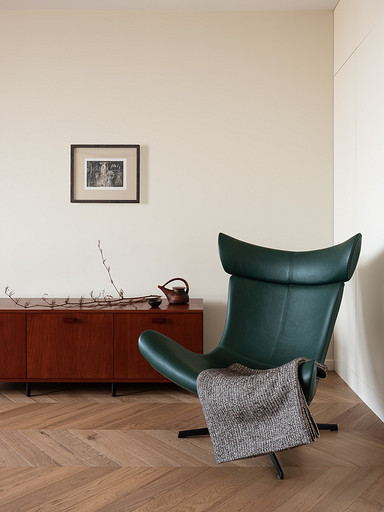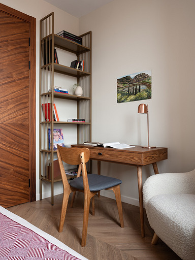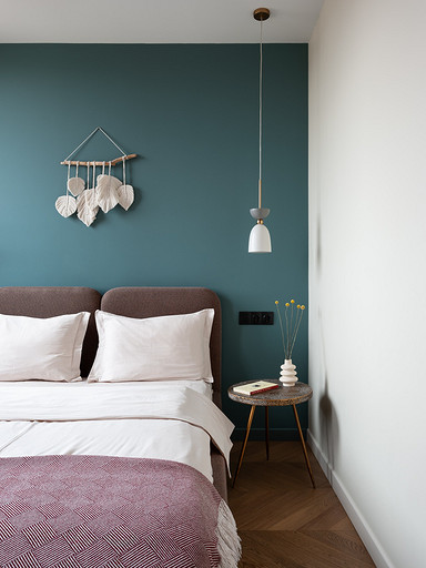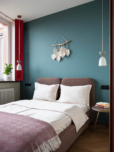 - Декор: картина над письменным столом в спальне и на балконе написаны заказчицей, тиражная шелкография — Маша Янковская (не попала в кадры), несколько небольших картин и светильник ручной работы были куплены на блошином рынке