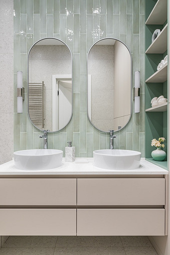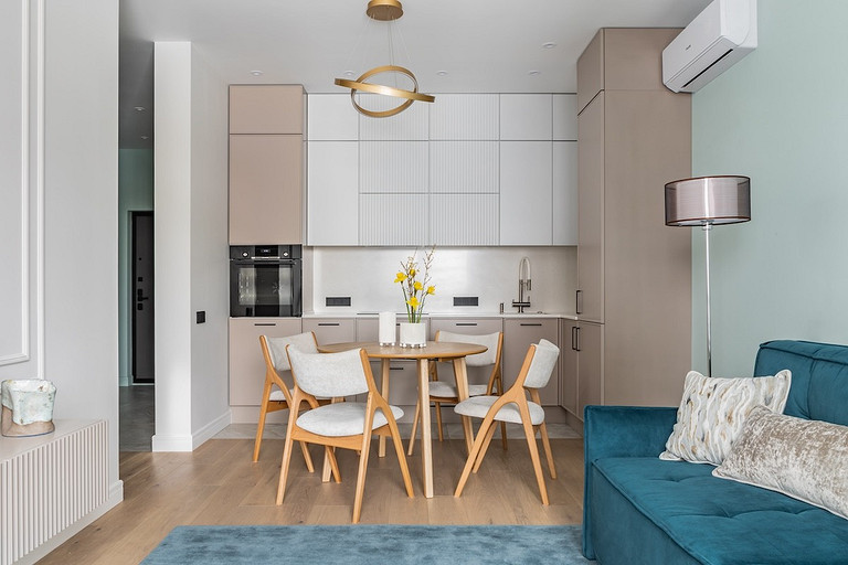 Светлая трешка с голубыми акцентами для семьи в Москве