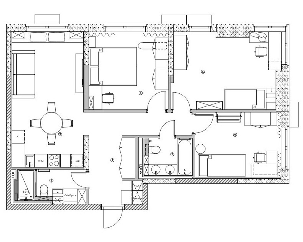 Реализованный проект трехкомнатной квартиры площадью 84 м2