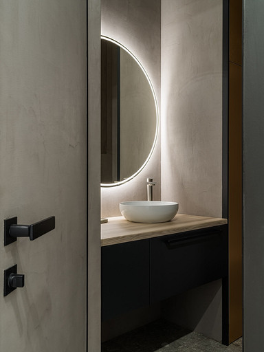- Стены: краска Richards, микроцемент Stoopen & Meeus