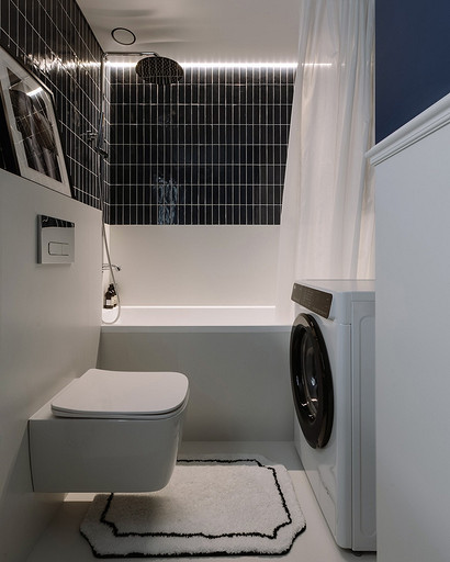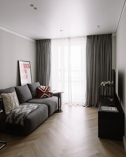 - Мебель: корпусная мебель сделана на заказ, диван S-Home, стулья и скамейка в прихожей La Redoute
