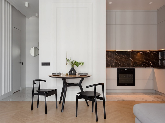 Благодаря перепланировке удалось расширить функционал квартиры. Интерьер тяготеет к минимализму, но с классическими элегантными деталями. Читать далее...