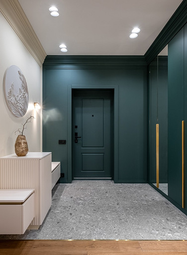 - Стены: краска Majestic, гипсовые панели Artpole, фрески Affresco