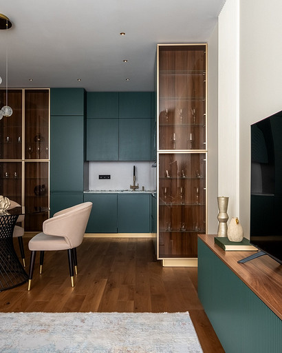 - Пол: инженерная доска Green Line от «Vintage Паркет», керамогранит Porcelanosa