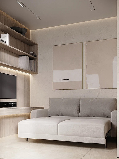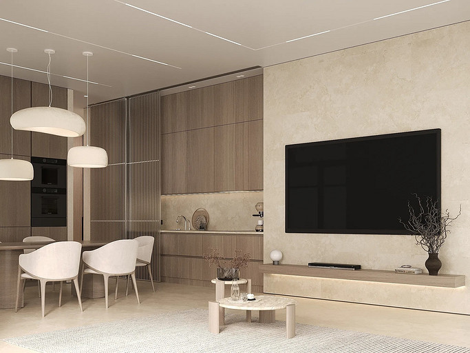 Когда речь заходит о дизайне интерьера, многие люди стремятся создать уютное и функциональное пространство, отражающее их индивидуальность и стиль. Один из таких стилей, который набирает популярность, — это стиль Джапанди. Это квартира в стиле Джапанди для пары с ребенком- подростком. Вся квартира выполнена в светлых тонах, что свойственно для этого стиля. Интерьер завязан на геометрии и продолжении линий. В прихожей мы разместили удобные системы хранения, большое зеркало, пуф, картину. Кухня-гостиная является центральным местом в этой квартире. Она получилась утонченная и лаконичная. На кухне мы расположена обеденная зона, над которой разместили светильники, характерные для стиля Джапанди. В гостиной расположился удобный диван, тв-зона, небольшой журнальный столик. Получилось идеальное место, где семья сможет проводить время вместе. Спокойные тона в спальне создают атмосферу релаксации и уюта. Над кроватью мы разместили картину. Напротив кровати расположился встроенный вместительный шкаф. Площадь спальни позволяет разместить небольшое рабочее место. Детская комната оформлена с учетом потребностей ребенка. Здесь мы разместили диван, рабочее место, телевизор, полки под необходимое, шкаф. В квартире два санузла — с ванной и душевой. В санузле с ванной мы разместили сушильную и стиральную машинки. Квартира в стиле Джапанди — это идеальное пространство, где можно наслаждаться спокойствием и гармонией. Светлые тона, минималистический дизайн и функциональные элементы помогут создать комфортное и уютное пространство для всей семьи.