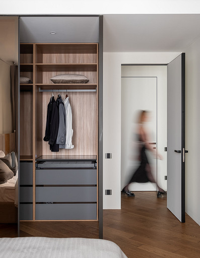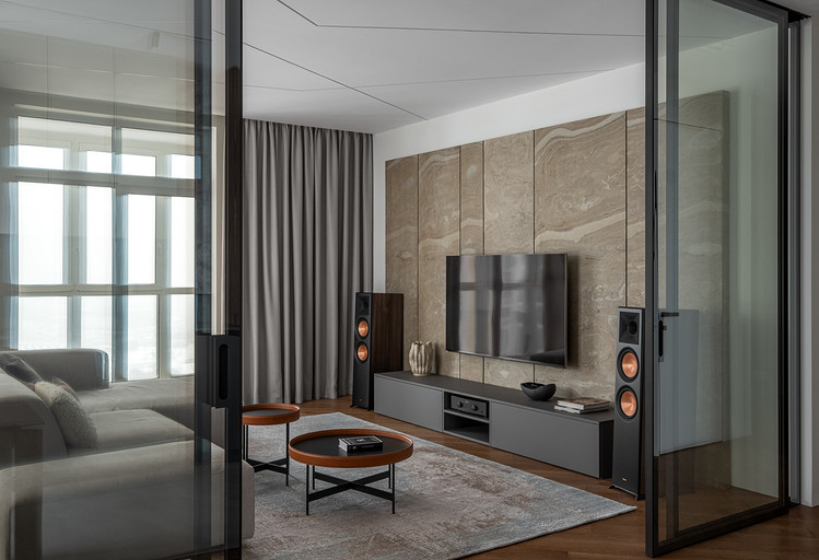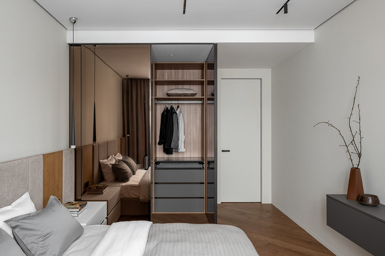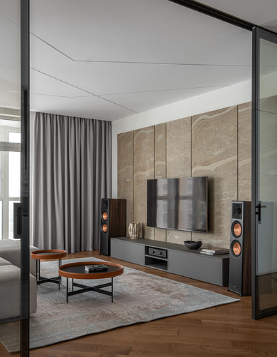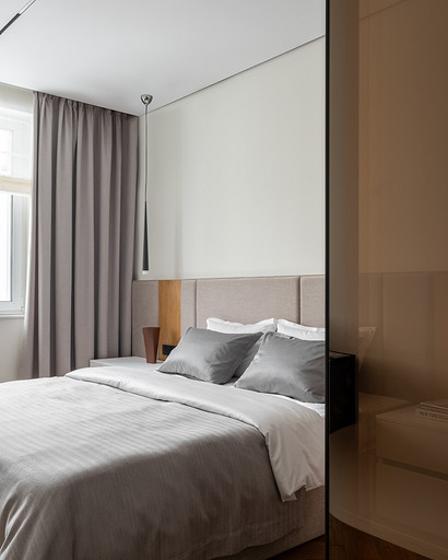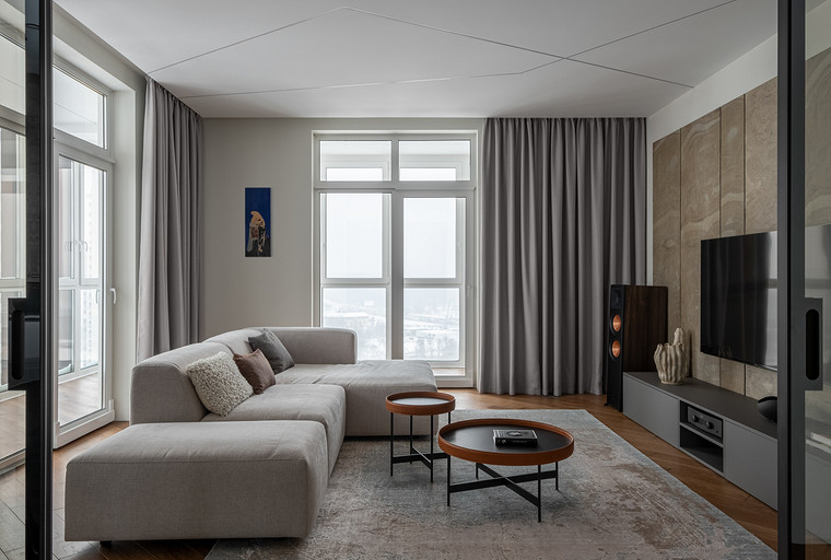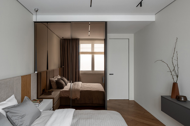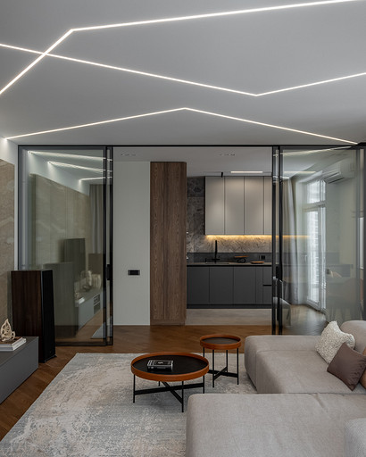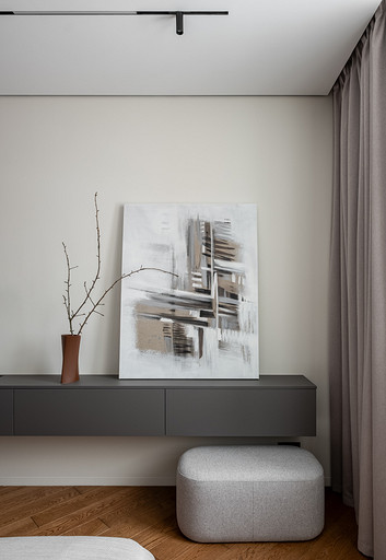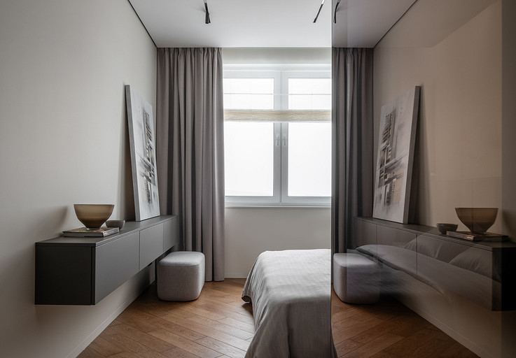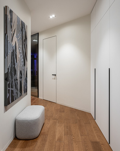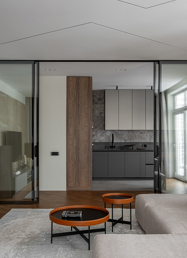 Уникальное техническое задание, с которым я столкнулась впервые! Заказчик обладал ясным видением желаемого интерьера, и я на миг подумала : «А зачем я здесь?». Световые решения, материалы, элементы мебели... Все было прописано. Наш первый шаг был перепланировка. Пришло мое время удивить заказчика. Я трансформировала пространство, сделав его более логичным и функциональным. В коридоре мы установили огромный шкаф, спланировали полноценную ванную комнату и гостевой санузел с постирочной зоной, а в спальне появился гардероб. Все изменения были в рамках закона. Естественные и интуитивно понятные дизайнерские решения привели нас к созданию акцентов. Например, направление паркета подчеркивает геометрию и указывает направление. Фраза заказчика «Давайте попробуем что-то новое!» вдохновила меня, и в гостиной появилась тв-зона, выполненная из живого среза настоящего камня. Каменный шпон также поддержал изящно-брутальное решение — металлизированные фасады кухни. Идея парящего металлического куба на каменном фартуке получила свое воплощение. В ванных комнатах появился невероятно тактильный микроцемент на стенах и полу, который также использовался на полу в кухне и прихожей. Огромное значение уделялось выбранным материалам. С одной стороны, простые белые стены служили фоном, но они лишь подчеркивали все текстуры, которые стали акцентами. В спальне главным центром внимания стал стеклянный куб. Это масштабное сооружение сочетает в себе функциональность гардероба и визуальную привлекательность художественного объекта. Большинство мебели изготовлено нашими российскими производителями. Вся встроенная мебель от компании Кухни ТЕТРИС, диван от фабрики 4house. Утонченности добавили мелкие элементы мебели от узнаваемых брендов Calligaris, Cosmorelax, Kartell. Декор тщательно подбирался у компании Bo Concept, Izzi decor, Not only cups. Вдохновляющая живопись Ильи Цхурбаева поставила точки в гостиной. В спальне и прихожей свежий глоток искусства от Кирилла Ашастина и Татьяны Кириковой. Мягчейшее воздушное текстильное оформление от Аtelier Tati и Bo Concept. Ковер от Art de Vivre закрутил центр гостиной. Важно отметить, что в каждом помещении прослеживается единая концепция. Тонкое и минималистичное пространство наполнено глубоким смыслом.