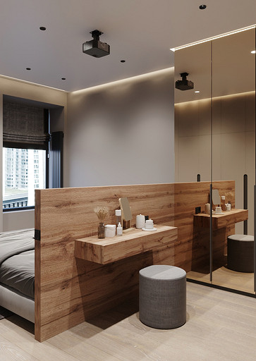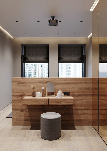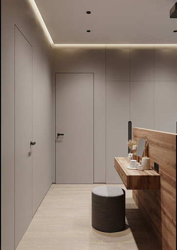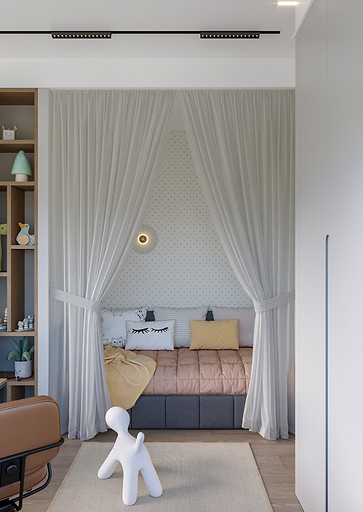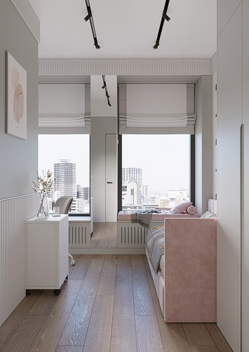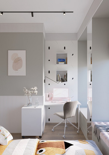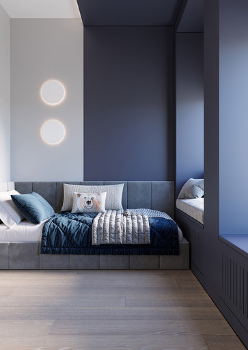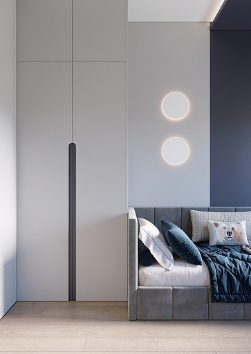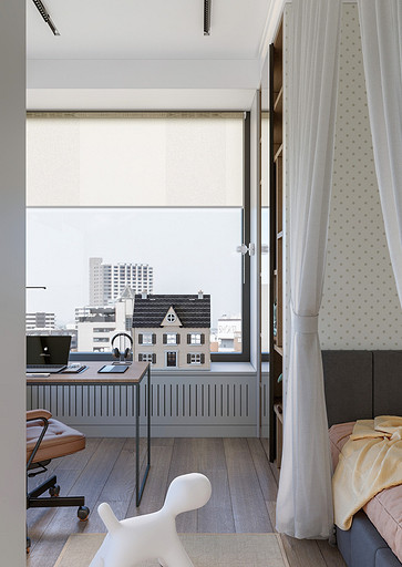 Заказчики хотели видеть светлый уютный интерьер с максимально скрытыми системами хранения, а главным пожеланием было то что нужно выделить каждому ребёнку личное изолированное пространство. Общая площадь квартиры 84 кв.м. по мимо трёх детских, спальни для родителей, так же нужно было предусмотреть место для двух санузлов, кухни-столовой, гардеробной и постирочной. Проект выполнен в современном стиле с использованием современных материалов и тенденций, главным образом мебель и материалы подбирались с учётом быстрых сроков поставок и наличия на складах, так как по ремонтным работам предполагаются сжатые сроки реализации. В интерьере присутствуют актуальные на сегодняшний день решения такие как: скрытые конструкции межкомнатных дверей и плинтусов, встроенные системы освещения и системы домашнего кинотеатра, актуальный гипсовый декор.