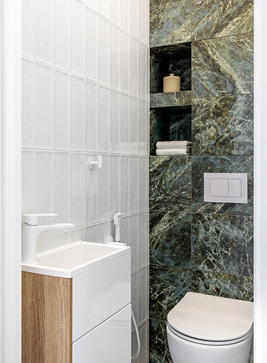 - Сантехника: ванна Toscana, тумба с раковиной в ванной Grossman, унитаз BelBango, тумба с раковиной в туалете 1MarKa, гигиенический душ и смесители Hansberge