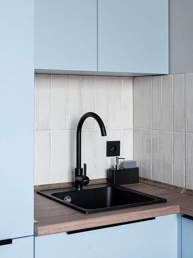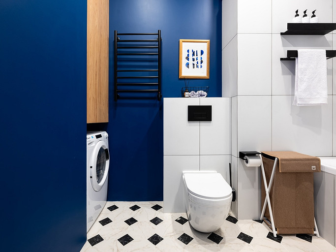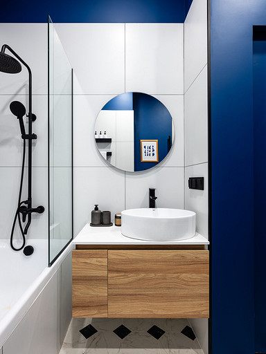 - Мебель: тумба для раковины Bauedge, шкаф сделан на заказ