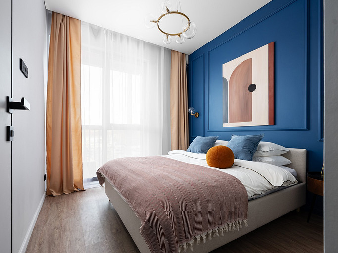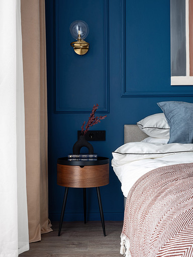 - Мебель: шкаф сделан на заказ по индивидуальному проекту, кровать Moon Family, прикроватная тумба Favorite House
