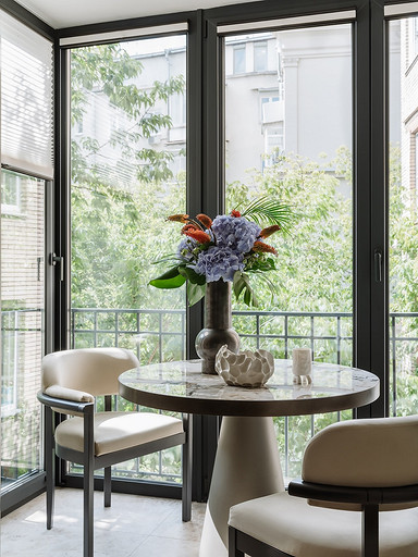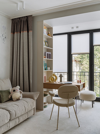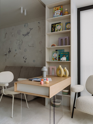 - Мебель: столярные изделия и кухня Principle, диван и стулья Dantone Home, обеденный стол Cattelan Italia, кровать Kico, кресло и стул в детской Delo Design