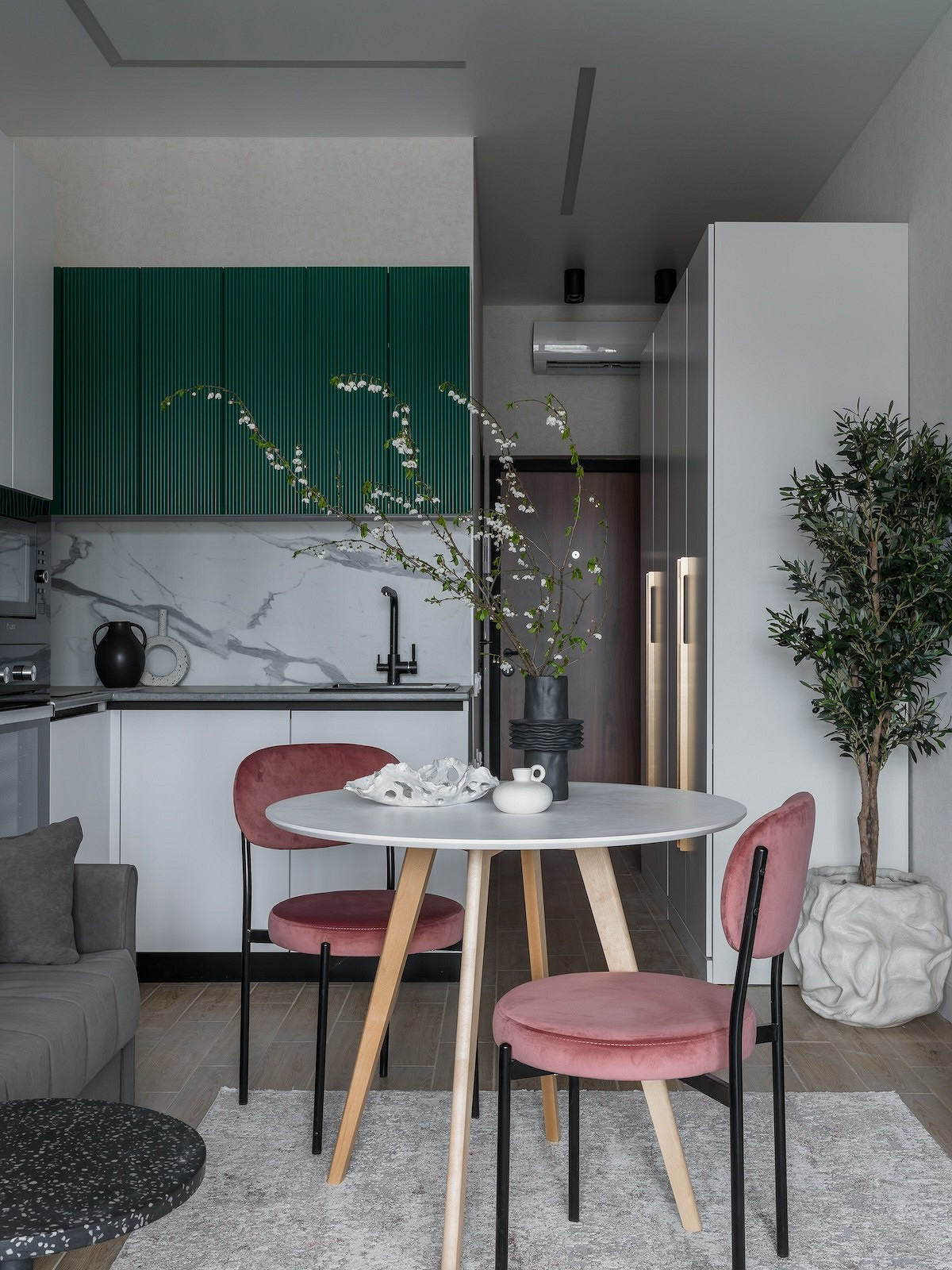Маленькая студия находится в новом ЖК поселка Дагомыс, который расположен вблизи Сочи. До моря — 10 минут. Дизайнеры перенесли пейзаж за окном в интерьер. Читать далее...