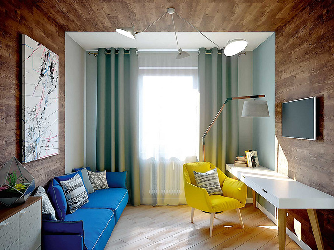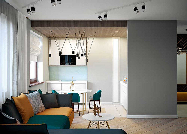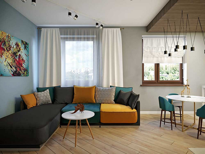 Квартира для трех человек с лаконичной эстетикой, но яркими цветами