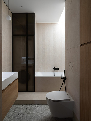 - Сантехника: Hansgrohe, отдельностоящая раковина NS Bath, унитаз Esbano, душевая Grace Glass