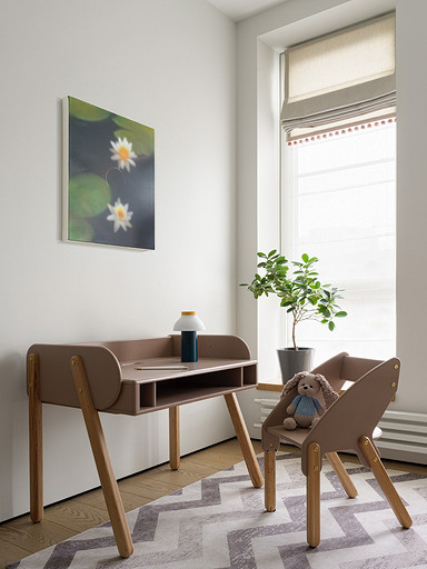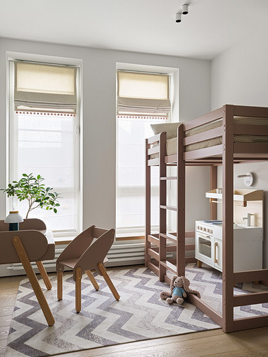 - Мебель: двухъярусная кровать Baby Lodge по проекту Anga Project, стол и стул Baby Chipak